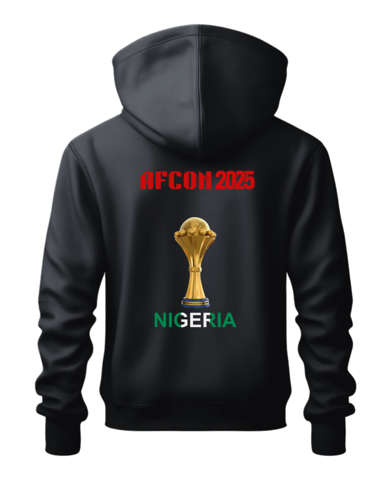 AFCON 2025 Black-branded Hoodie for football fans supporting the Nigerian National Team in the AFCON 2025 Tournament in Morocco.