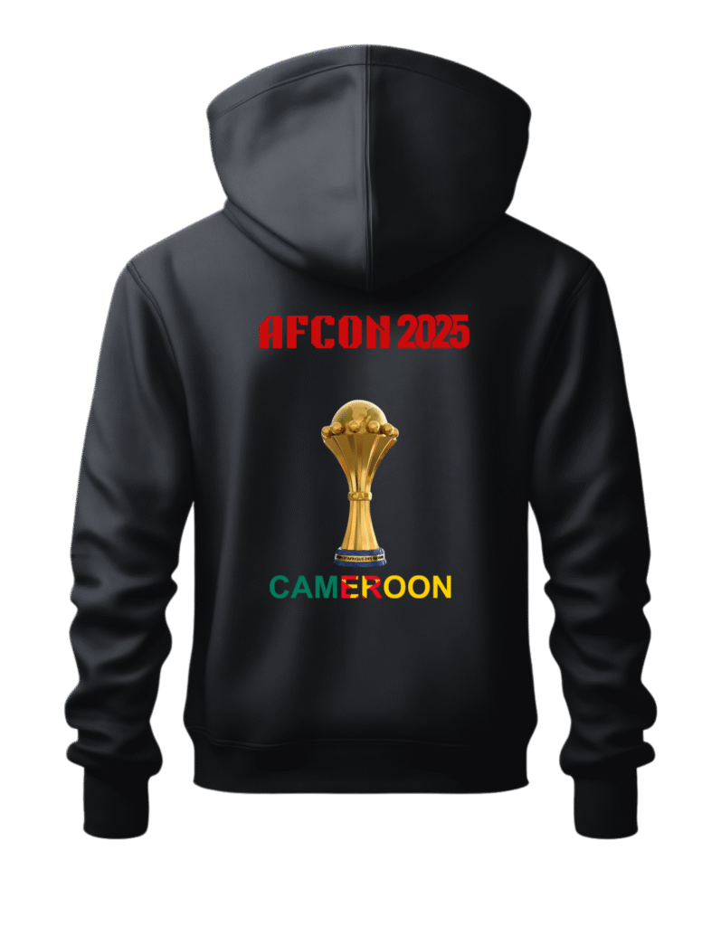 AFCON 2025 Black-branded Hoodie for football fans supporting the Cameroonian National Team in the AFCON 2025 Tournament in Morocco.